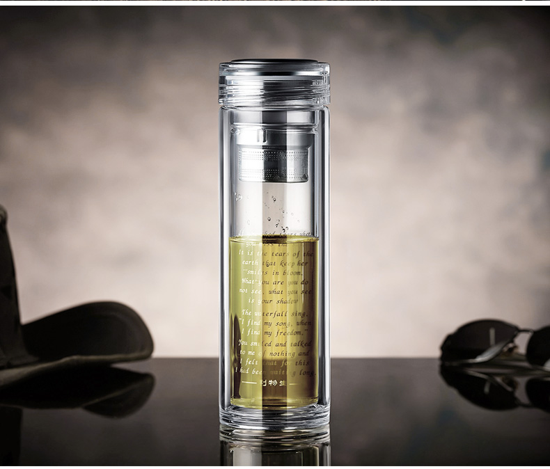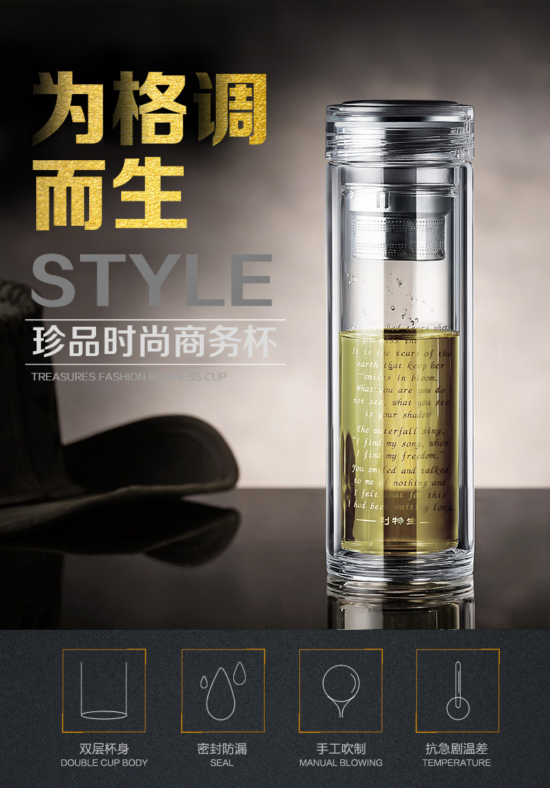 7天連鎖酒店定做雙層便攜隔熱帶網玻璃茶杯