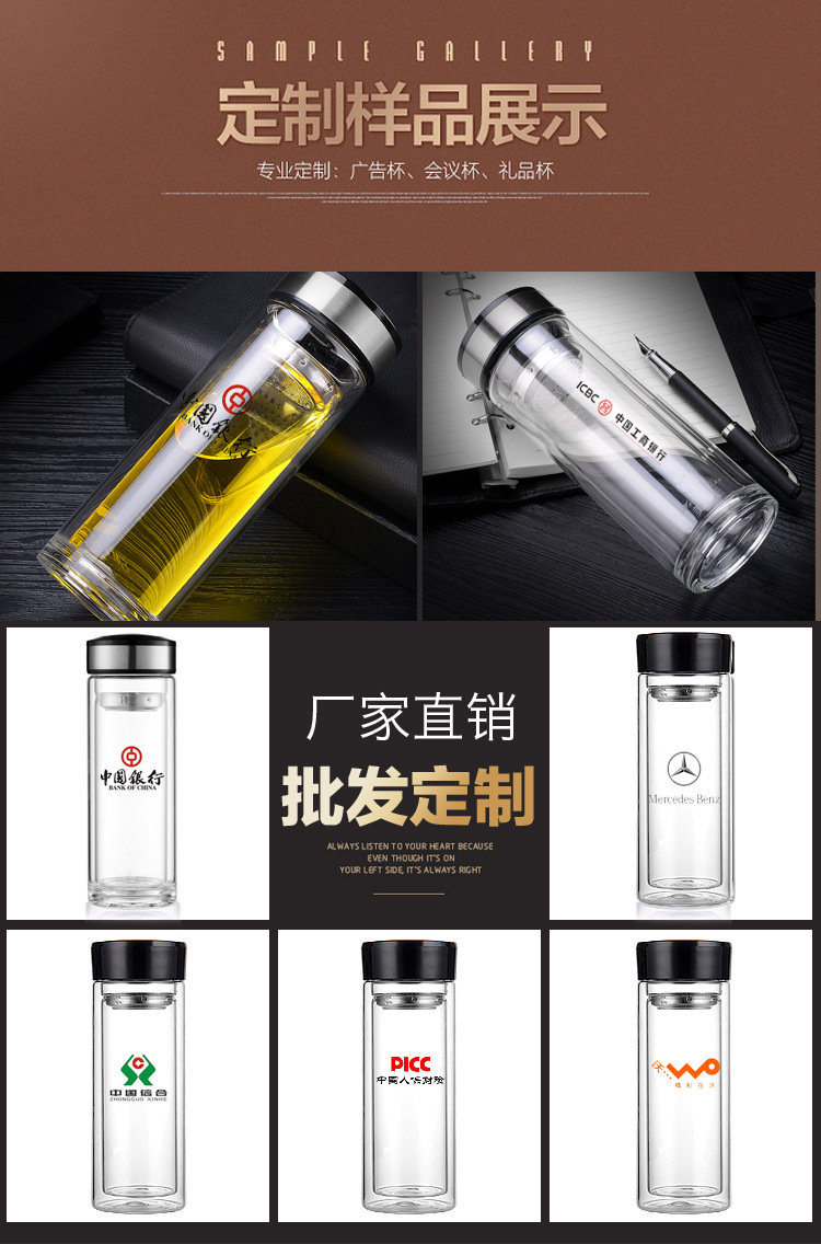 蘭州大學(xué)圖書館定制雙層玻璃杯商務(wù)禮品杯子