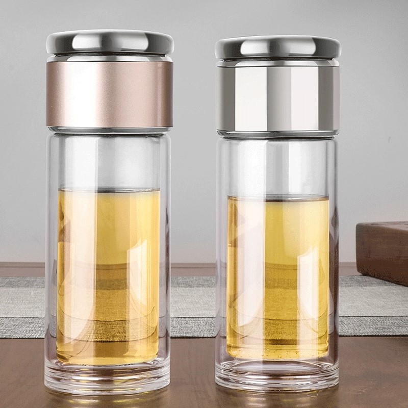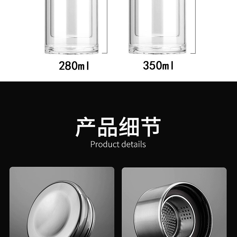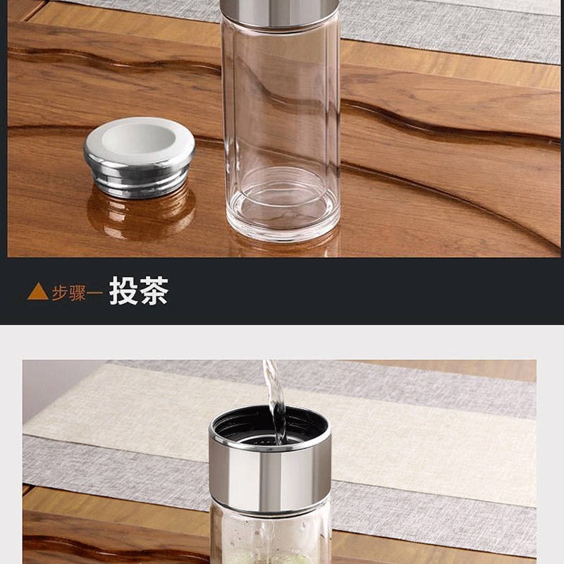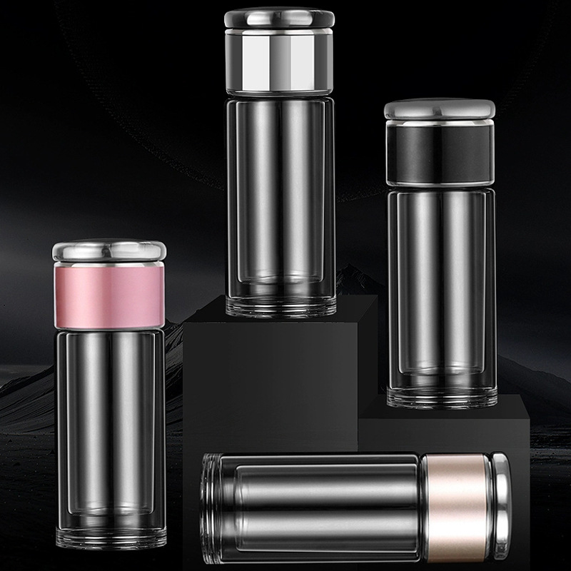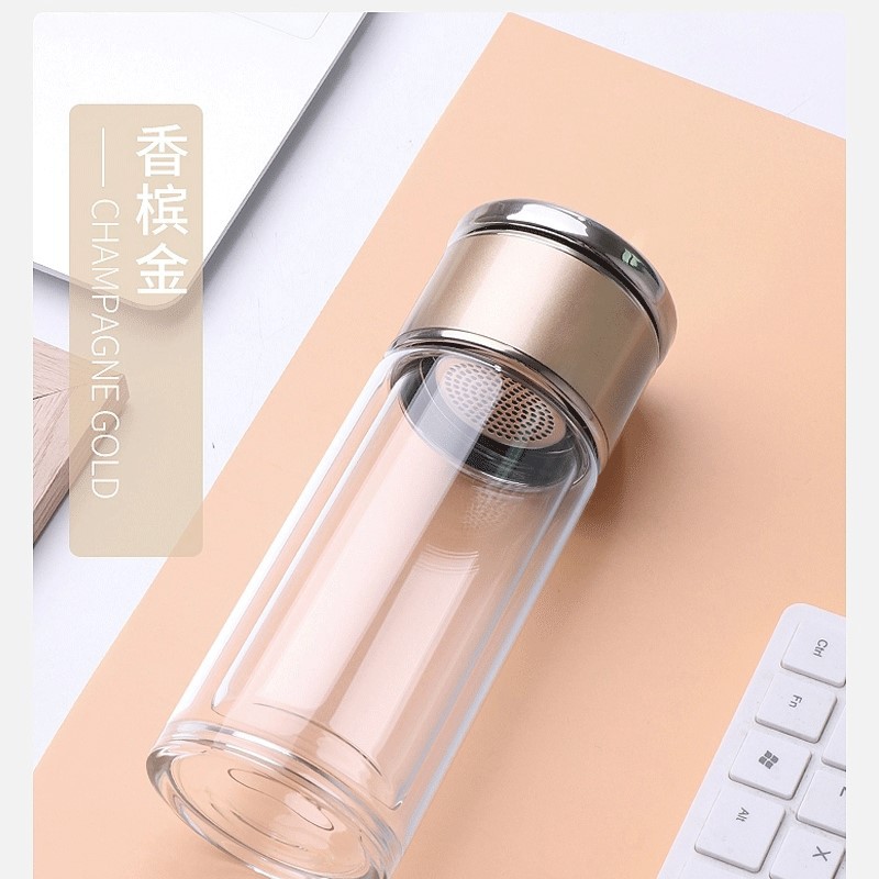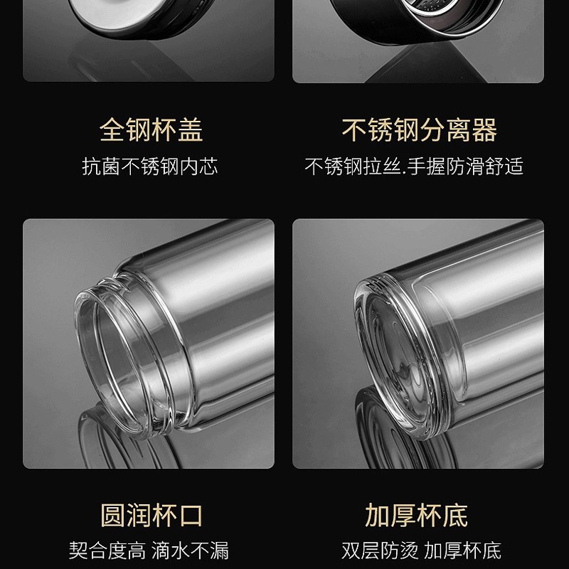 網(wǎng)紅茶水分離杯雙層玻璃杯家用透明玻璃水杯商務(wù)禮品茶杯隔熱