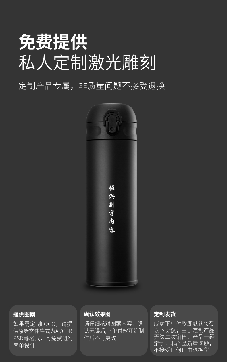 彈跳蓋保溫杯男士女車載便攜大容量316不銹鋼定制刻字水杯