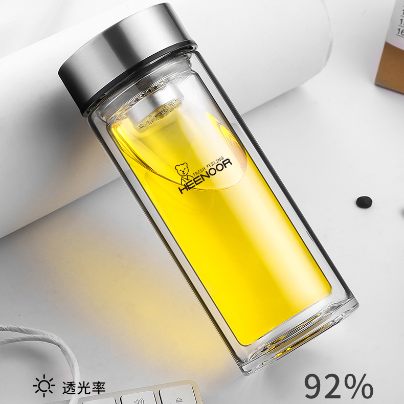 希諾雙層玻璃杯茶水分離水杯男家用透明過濾泡茶杯子高檔送禮商務